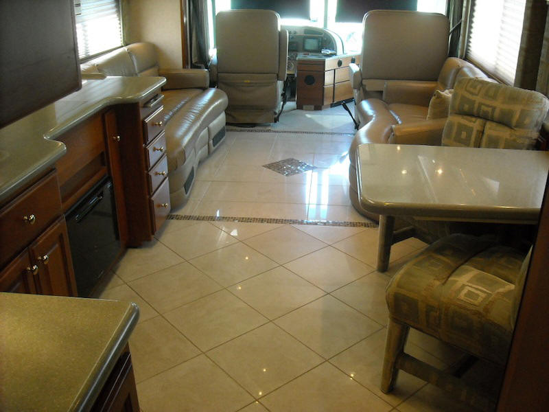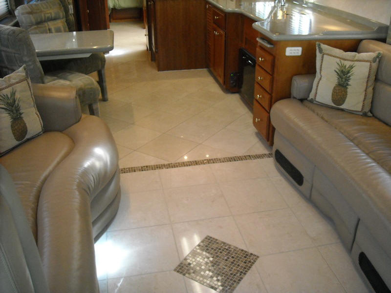 D) CUSTOM TILE IN SALON, GALLEY, BATH, AND ENTRY. E) PRIVATE