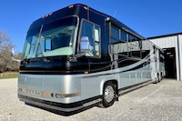 Step into luxury with this 2004 Newell Quad Slide, with the bath and a half floorplan. This coach offers a spacious and fully updated interior, complete with LED lighting, reupholstered furniture, new faucets, and new TVs. The galley and bathrooms feature heated granite tile floors, while the bedroom boasts a comfortable wood floor. A full-size Subzero refrigerator, stack washer and dryer and a whirlpool bathtub provide all the comforts of home. The coach just had engine, generator and aquahot service preformed so that everything is fresh for the new owner.