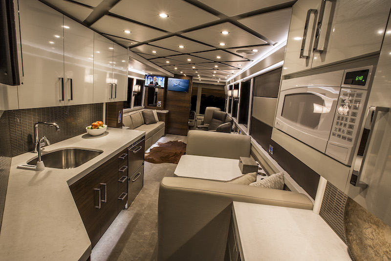 This locally owned and serviced at the factory coach is a 2014 Featherlite Executive single slide model on the X chassis is the perfect coach with the ability to entertain, tailgate, group travel and overnight! This blend of luxury and utility with yacht quality fit and finish is a rare treasure. The single slide in the salon expands to allow for larger group entertaining or increased comfort when its just a couple. The rear conference room has a couch that converts for sleeping and there is a mid-coach full bath. This coach offers the new owner all the incredible features such as: