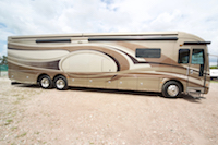 2015 American Tradition 45A, Full Wall Triple Slide Out, Bath and a Half, 20,000 miles, 500 ISX Cummins, Freightliner/Liberty Chassis, Allison MH4000 Transmission, 10kW Onan Diesel Generator with Auto Start, Air and Hydraulic Levelers, Back to Back Integrated Girard Patio Awnings, Frameless Windows, Power Cord Reel, Exterior Side Wall TV and Stereo/CD Player, Pass thru Slide Tray, In Motion Winegard SAT, 2800 watt Pure Sine Wave Inverter, Waste Management system, Power Cord Reel, Exterior Stainless Steel Trim package, Back and Side Color Cameras, AGM Batteries, (3) 15M BTU AC’s with 2 Heat Pumps, Aqua Hot Diesel Heat and Hot water, Glazed Cherry Cabinetry, Full Tile Flooring including Bedroom, GPS Navigation, (2) Sofas, MCD Power Shade Pkg, Heated Tile Flooring, Dish Drawer, Stack Washer/Dryer, King Mattress, All Electric Unit (no propane), Special Shower, Adtl. Storage in Bath. No Smokers or Pets. Stored undercover. Also available 2010 Buick Enclave set up to tow.