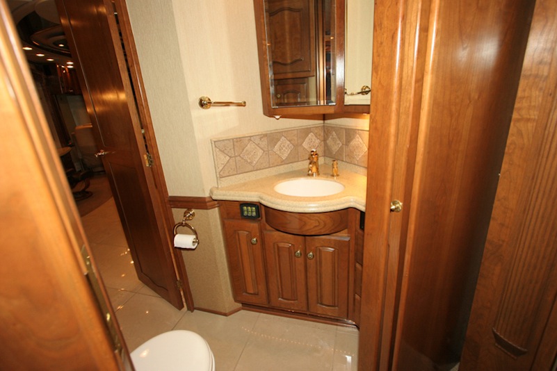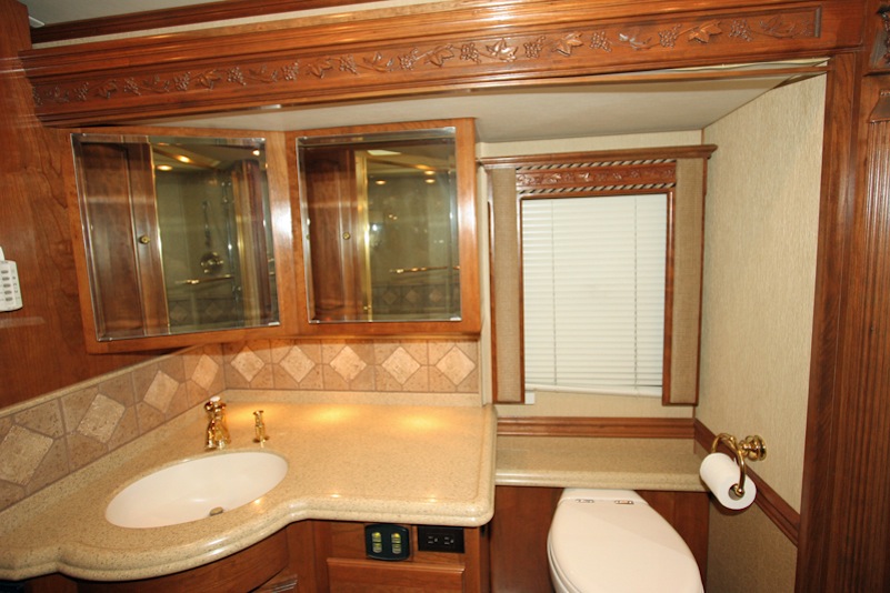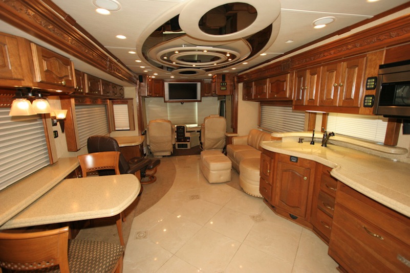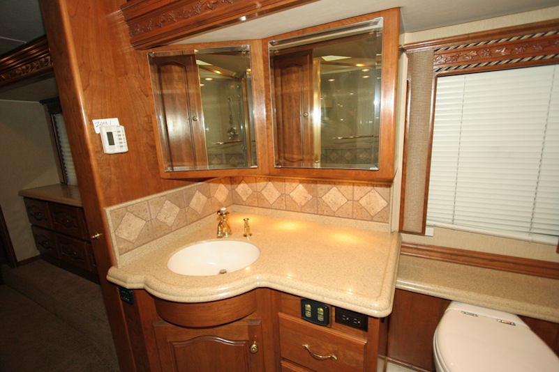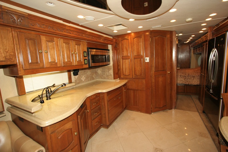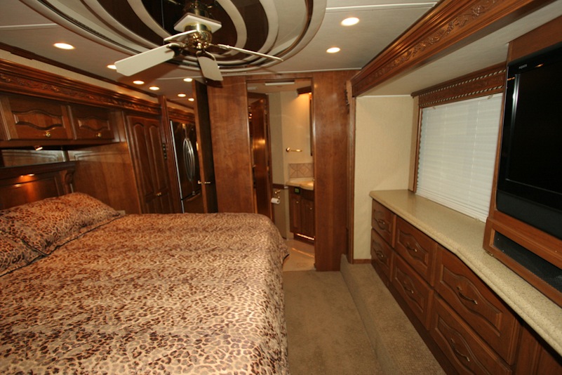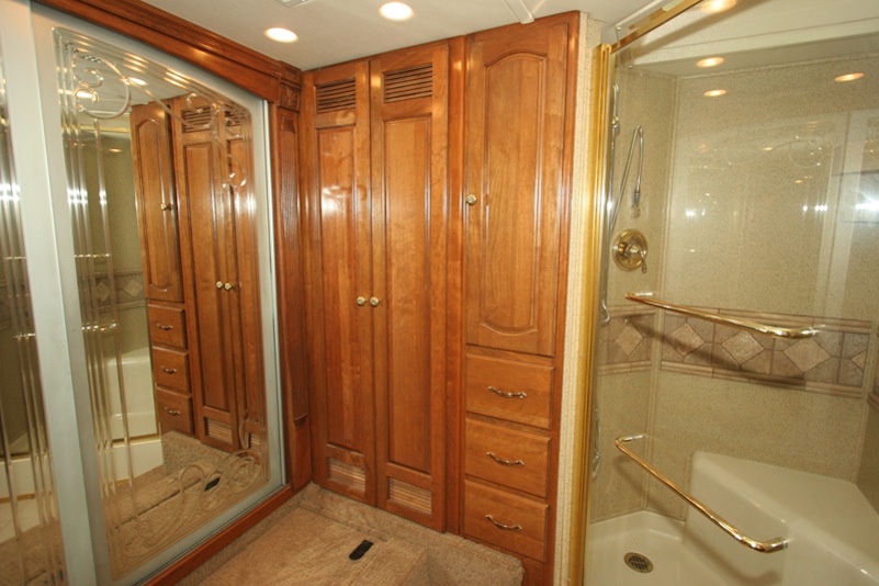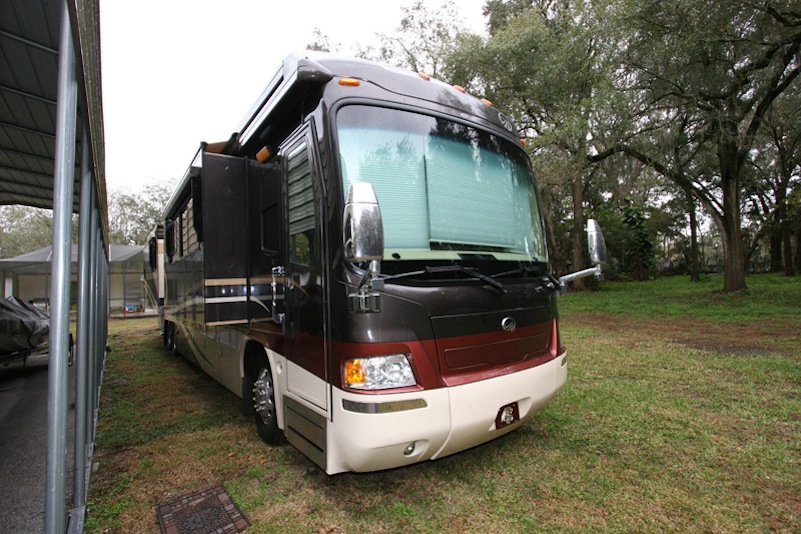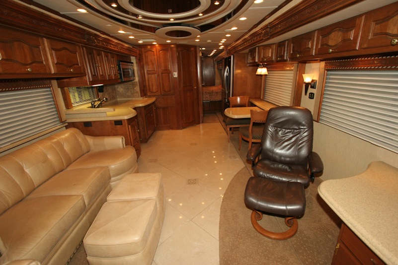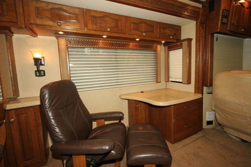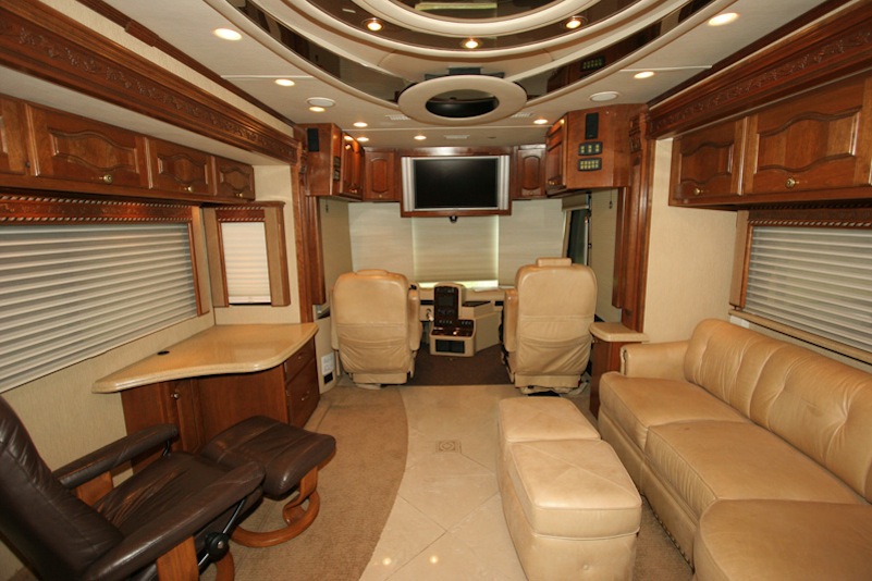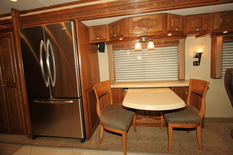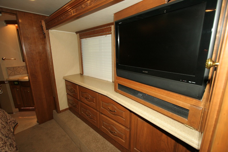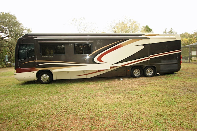2007 Monaco Signature 45’ Noble III – Triple/Full Wall Slide, One Owner Coach is approximately 82,000 miles. Stored in Climate Control Garage when not in use. Cummins ISX 600hp Engine, Allison MH4000 Transmission, Roadmaster S Series Chassis, Jacobs 2 Stage Engine Brake, 12.5 kW Onan QD Genset w/Auto Start, Deluxe Full Body Paint with Fades, 2800 watt Pure Sine Wave Inverter, Multiplex 12v Wiring sys, (3) 15M BTU A/Cs w/Heat Pumps, Aqua Hot Diesel Heat and Hot Water sys, No Fuss Flush Holding Tank sys, Stainless Steel Service Center, Auto Traction Control, Triple Head Power/Heated Mirrors with Cameras, In Motion DSS HD SAT, Electric 90” Pass Thru Sliding Tray, Collision Avoidance system, Back to Back Power Girard Integrated Awning package, Girard Power Door Awning, Girard Powered Window Awnings, Adjustable Shock Sys, XM Radio, CB Radio & Antenna, Auto Air Leveling sys, Color Monitor, GPS Navigation, Aladdin Video Coach sys, Power Sun Visors, Bose Home Theater, Universal Remote, 37” LCD TV, 32” LCD TV in Bedroom, Power Silhouette Shade in Living and Dining Area, Classic Cherry Cabinetry, Full Tile Flooring, Custom Computer Desk with Euro Recliner, Residential Refrigerator with AGM Batteries, Fisher & Paykel Dish drawer, Central VAC sys, Stack Washer/Dryer, New King deluxe Pillow top Mattress, Ceiling Fan. No smokers or pets.