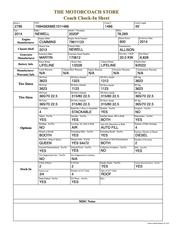 The Motorcoach Store at 941-896-4819 or EMAIL